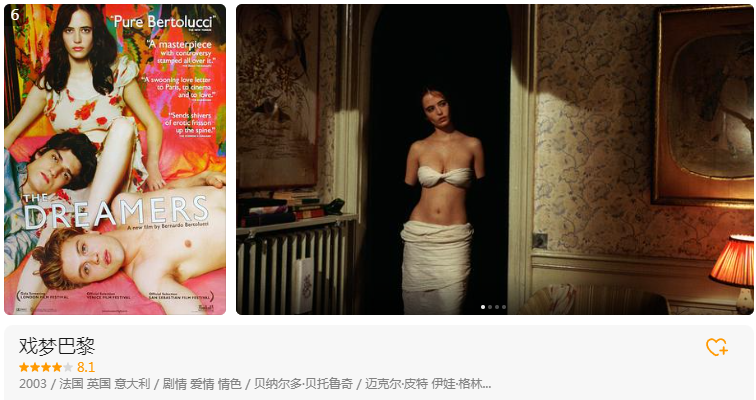 6、[豆瓣高分情色]戏梦巴黎.2003[蓝光1080P][中文字幕][多版本]【4G+6.5G+18G】免费观看全集高清网盘资源